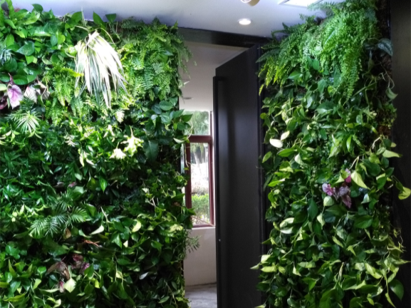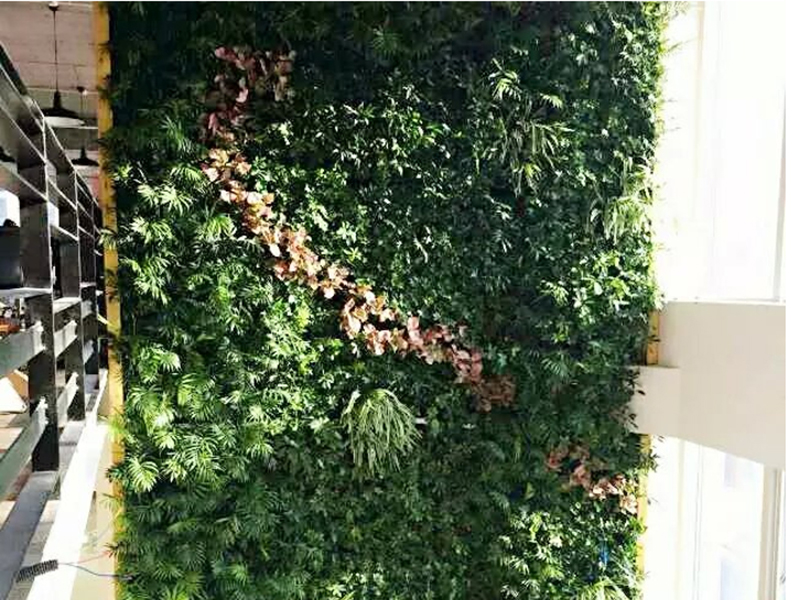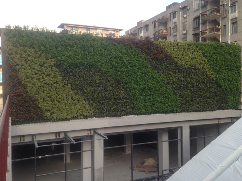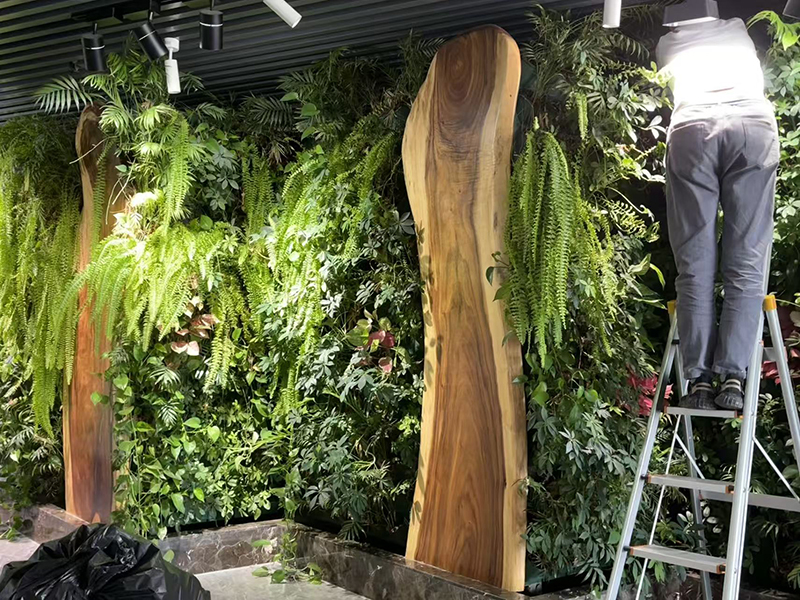 仿真绿植墙的制造依赖机械成型与手工修整的结合。机械工艺用于批量生产叶片、枝条等基础组件,确保形状与尺寸的统一性;手工工艺则用于调整叶片角度、补充细节纹理,使成品更接近真实植物的自然状态。材料方面,多采用耐候性强的塑料或硅胶,表面经过防紫外线处理,可降低长期暴露于阳光下的褪色风险。尺寸覆盖1米至10米,既能满足小型墙面装饰需求,也可用于大型商业空间的立体造景。