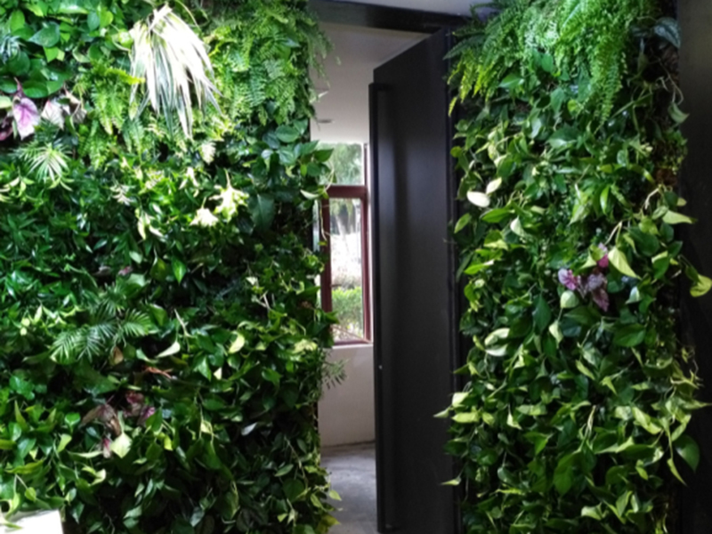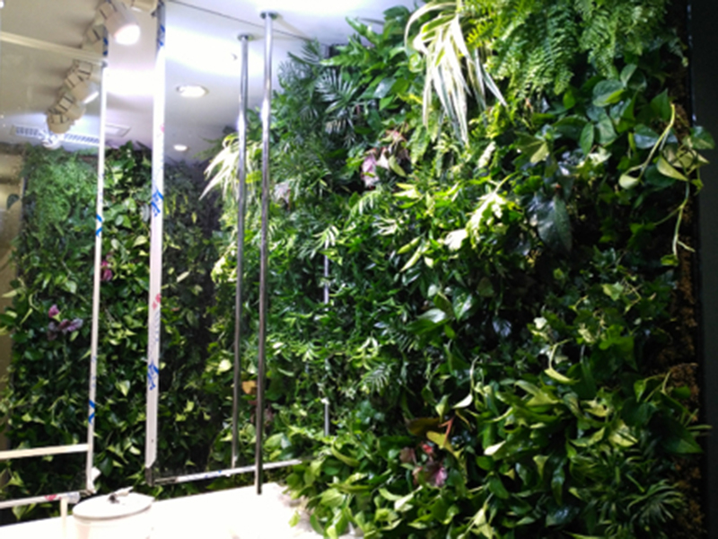 南京市华泽传媒公司 面积:20㎡ 植物:绿萝、袖珍椰子、吊兰、竹柏、绿宝、鸭脚木、波斯顿蕨等。 结构:无土水培栽培技术 技术:智能灌溉、施肥。 完工日期:2017.4